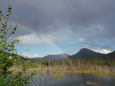 Stayed put today, worked on pictures, took a shower, ate dinner and saw a double rainbow. Tomorrow we are onto the signpost forest in Watson Lake YT. I will post pictures of our signs. I wanted to share this rainbow from after tonight.