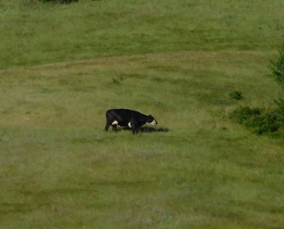 It all started Sunday morning June 11th, during my morning photo walk. I see movement on the hill it’s black looks low to the ground slow moving. It has to be a cat! I zoomed in snapped the picture looked at it turned out to be a black and white cow.
