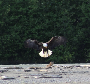 The weather was cooperating also, because it was the first real clear day. I was able to see the glacier and mountain across the fjord. We also saw 32 eagles on the main part of the trip and the remaining 12 in the scenery part of the trip. We got within 8 feet of one before he took flight saw 4 eagles on a log, some juvenile eagles, some just taking flight, and others just hanging out.