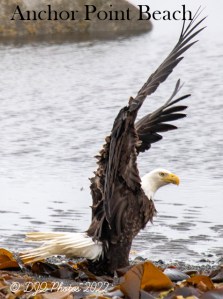 It was cool to see them all swarm on the beach and even fight over some pieces. I was not able to get any real fighting on camera, I did however capture the landing of an eagle after the fight. I think he thought He was victorious, because the wings are up saying: “he is the champion!”