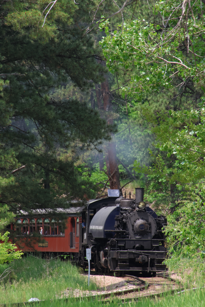 Here is another example of a shot you have planned out in your head that isn’t quite the reality of it. This is what happened the day we went to Keystone SD to photograph the train coming into the depot from Hill City. This train is run by Black Hills Central Railroad (interesting read) The 1880 train ride is 2 hours, and is a 20 mile round trip.   There is also a 15 minute layover in Keystone. So, I had the plan to set up the tripod and get into position to snap away when it arrived. Roy, who always has a better eye for composition looked at my idea and said there has to be a better place. I am so glad I listened to him. We found a road that runs along side the railroad tracks and there was pullout right along a curve in the tracks, perfect.