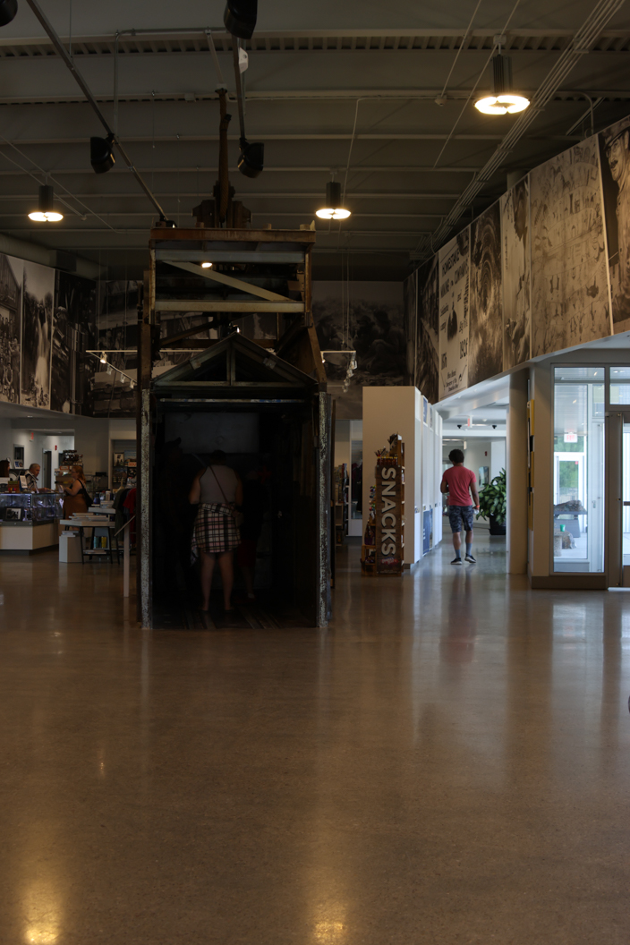 The most interesting research they are doing is involving Neutrinos Here is a link from energy.gov also explaining them. Before this place was home to SURF Sanford Underground Research Facility. It was the Homestake mine. The mine pit is a mile across and 8000 feet deep. This isn’t my picture but you can see how large the open pit is. The visitor center for SURF sits right on the edge of the pit. They also have one of the elevator cars that would take works down into the tunnels of the mine shaft.