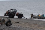 Our friend who we met on the ferry and met for dinner the other night mentioned the Ninilchik Beach as a place you can drive on the beach and could possibly see some eagles we decided to stop and check it out before heading up the road. The funny thing is who do we run into Tom our friend. He was taking his two dogs for a run. We talked for a bit about the fishing, the old cannery for fish, eagles, and dogs. (side note I saw 1 eagle while we were there.)