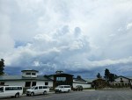 It turns out that the holdup was not stupid people but bikers who were having some tire issues. Not something I’d want to have happen surrounded by buffalo. In the video you can see the bikers walking and standing off to the side of the road.