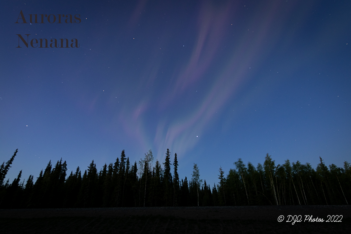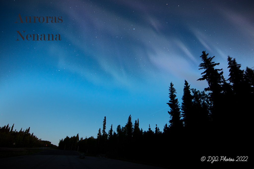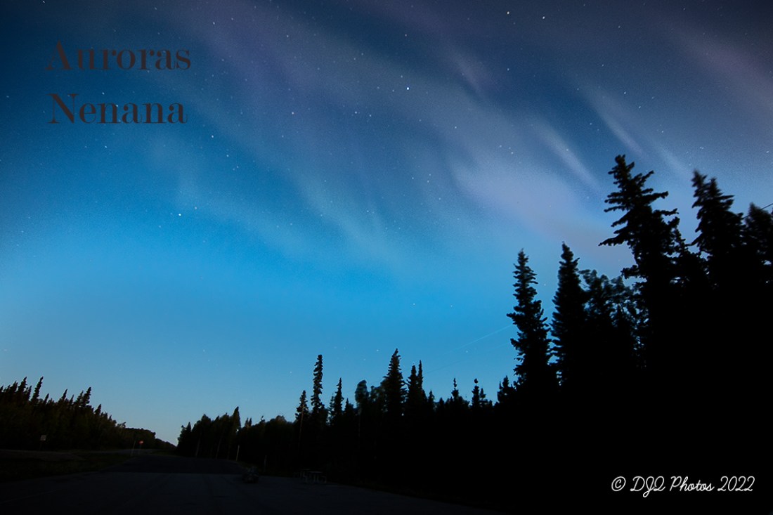 I enjoyed watching the lights ebb and flow. The clouds wisps in my opinion put some added personality to the lights. Once everything was packed back in the car it was time to head home. We did do a detour because the lights came out again a stop by Creamer’s Field explore Fairbanks said this was a good place for viewing the lights it was. I stayed in the car and just enjoyed the view. It was funny seeing people pulled off the side of the road out of their cars to watch the sky.