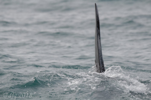 Well what to my watering eyes I think I see an orca pod. The boat slowed and I gingerly made it up to the bow of the boat. Once there the other people in our small group made room for me, to squeeze in even though I was turning green. This was an amazing site and the orcas were so close we had a baby breach right next to the boat. (I don’t think anyone got a picture.) We are bobbing in the water which is not going to work for me. I am getting ready to head back to the stern when, the fin appeared right in front of me. I snapped the photo and immediately headed back to the stern to embrace a pail and begin the dry heaves.