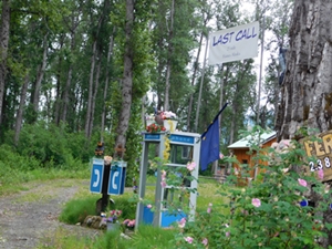 We then drove up to Resurrection Creek USFS recreation area. Roy looked in the creek to see if there were any salmon swimming, nothing. We didn’t think there would be because the fishing down by the campsite was not good sowe were told. On the way up we saw a Ptarmigan medium size game bird in the Grouse family. She was stopped in the middle of the road and would not moved until all of her chicks crossed the road.