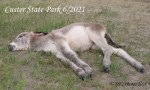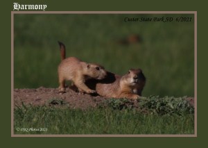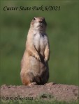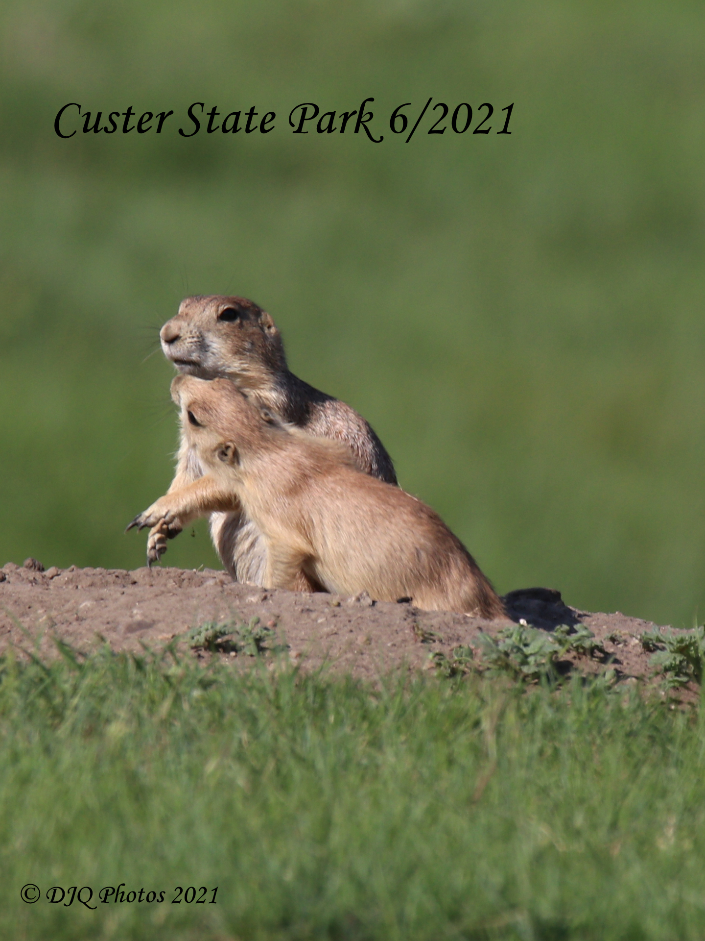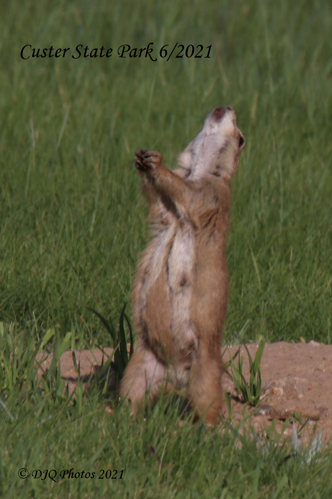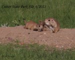 It was still early in the day so we decided to take the dirt road that runs between Wind Cave National Park and Custer State Park. It was here where we had seen quite a few prairie dogs in the past and the bunny who would not move. They seem to have spread out this year. Although we were able to catch a few enjoying peanuts.