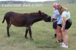 After our welcoming committee it was off to find the burros and maybe my stalker again I had more carrots. Yes, I saw my stalker and I did feed him. All was forgiven and he promised me no more kisses. I do have to say the baby is getting big and has started to let people touch her. Although I do think she is still a tad nervous you can see it in her eyes. Here are a few more pictures of baby and mommy. It is nice that she is still nursing.