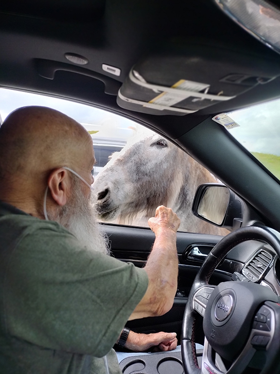 We also got to see a mutual petting/cleaning session going o between two of the burros. Roy even moved the car to get a better video. I tried to get a shot of the two but could not get an angle until I moved and caught one of them being a butt licker. It also seemed like Roy needed cleaning because his headlight got some action.
